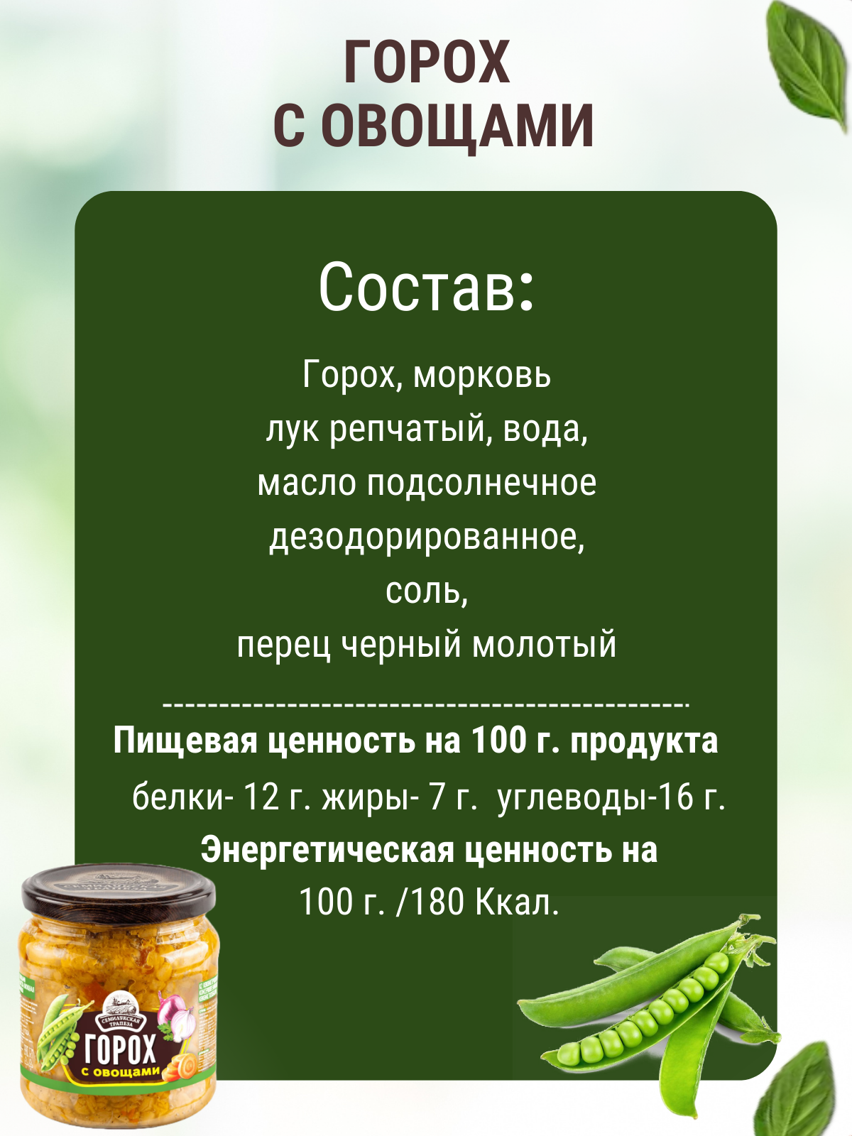 Ниже Вы можете прочитать отзывы на Закуска овощная "Горох с овощами", Семилукский, 1 шт. по 470 г, ознакомится с подробными характеристиками, посмотреть интересные обзоры и фотографии на Закуска овощная "Горох с овощами", Семилукский, 1 шт. по 470 г.