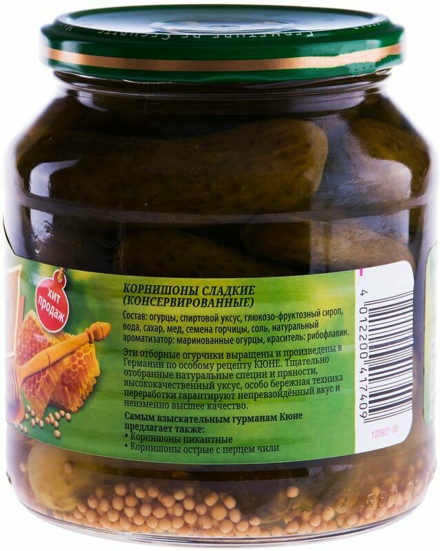 Ниже Вы можете прочитать отзывы на Корнишоны Kuhne сладкие медово-пряные 530 г, ознакомится с подробными характеристиками, посмотреть интересные обзоры и фотографии на Корнишоны Kuhne сладкие медово-пряные 530 г.