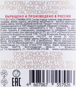 Огурцы "Скатерть-Самобранка" соленые по-домашнему с/б 950мл, овощные консервы