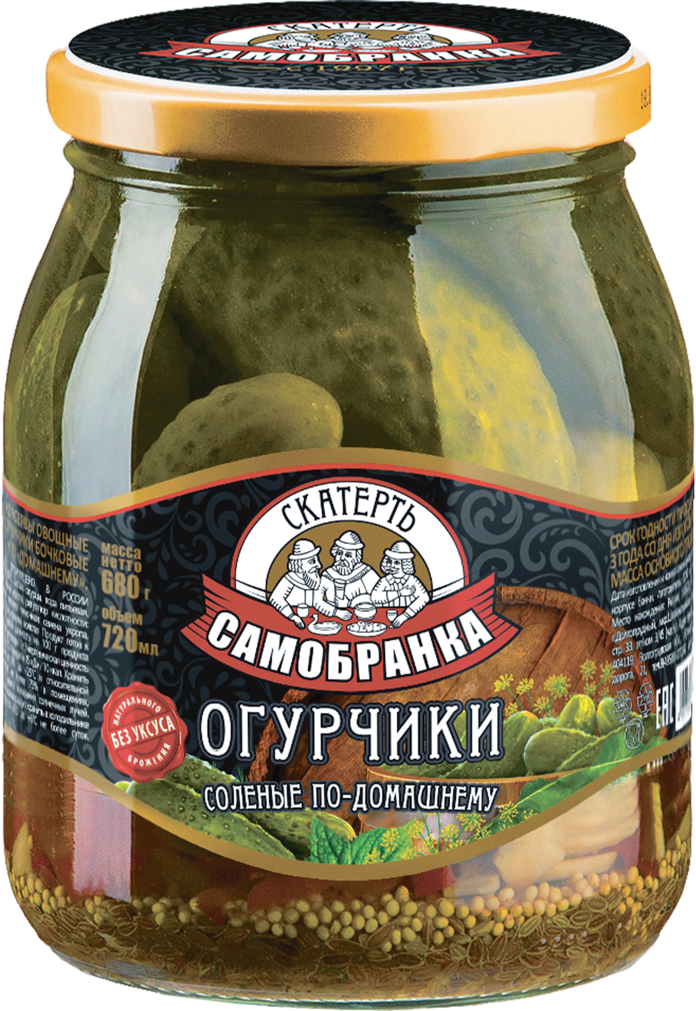 Огурчики 950 мл./900 гр. (огурцы) соленые по-домашнему бочковые, Скатерть-Самобранка