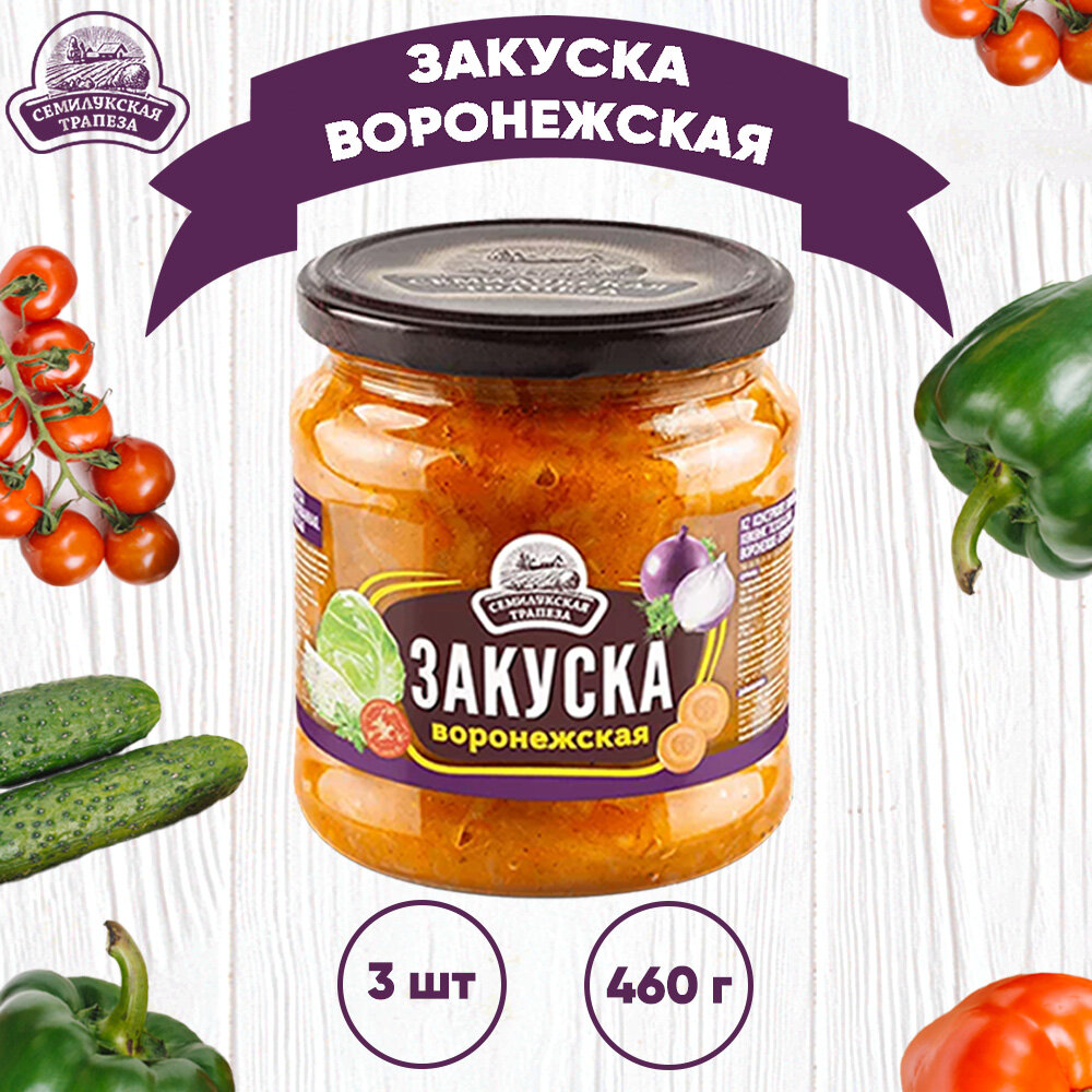 Закуска овощная "Воронежская", Семилукская трапеза, 3 шт. по 460 г интересное: