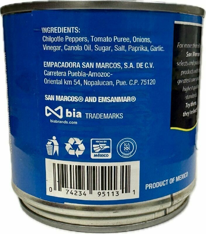 | Состав | Перец Чипотле, томатное пюре, лук, тростниковый уксус, масло канолы сахар, соль, паприка, чеснок. |