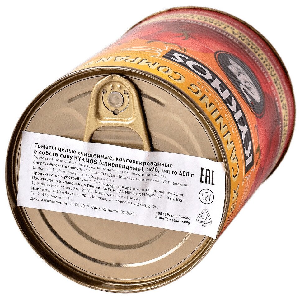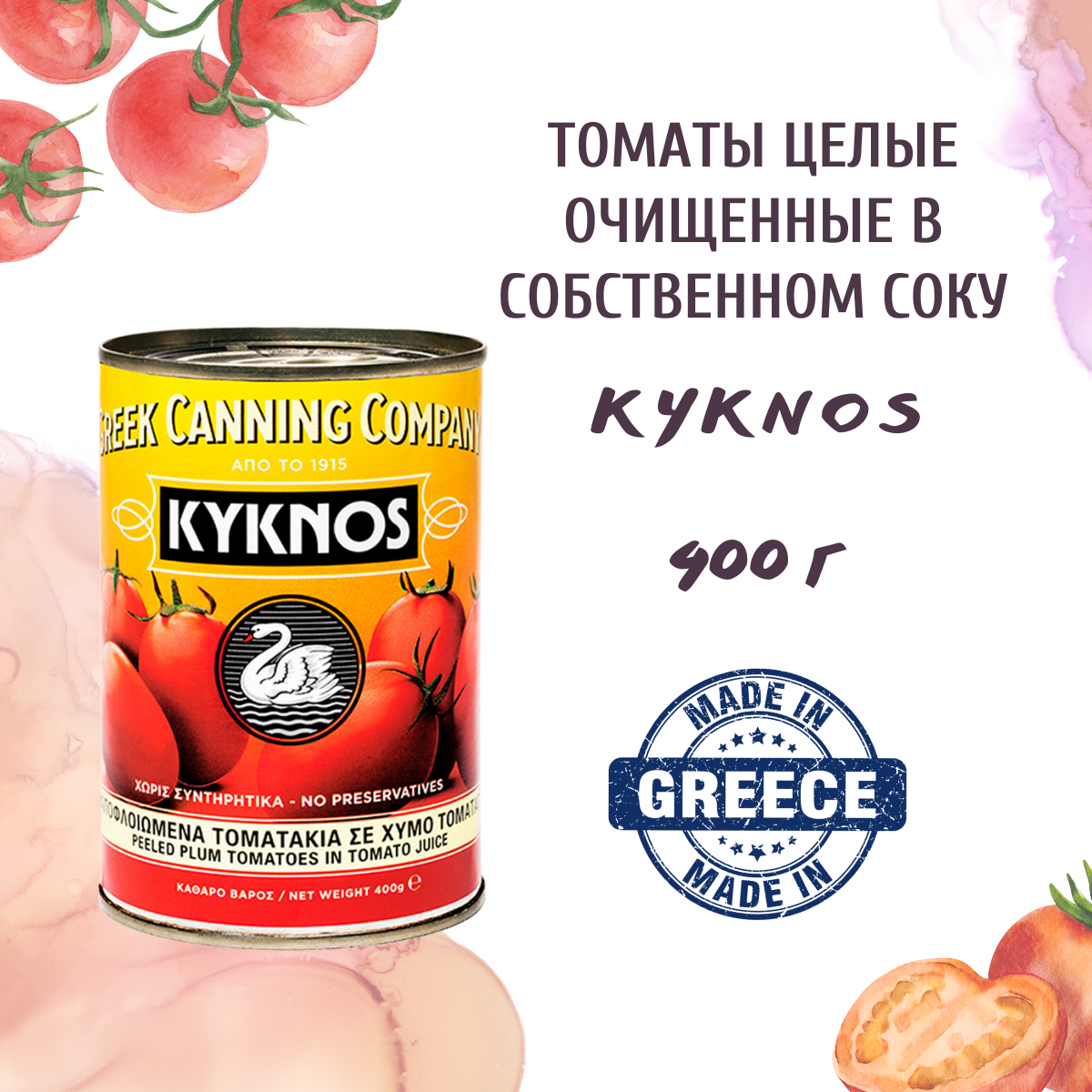 Томаты целые очищенные в собственном соку KYKNOS 400г интересное: