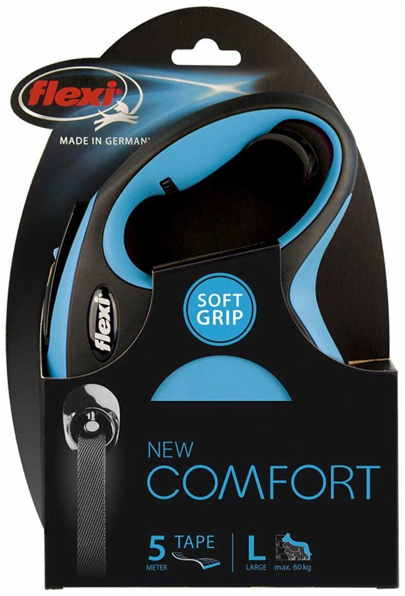 Поводок-рулетка Flexi New Coмfort tape L, 5 м, 60 кг, синий