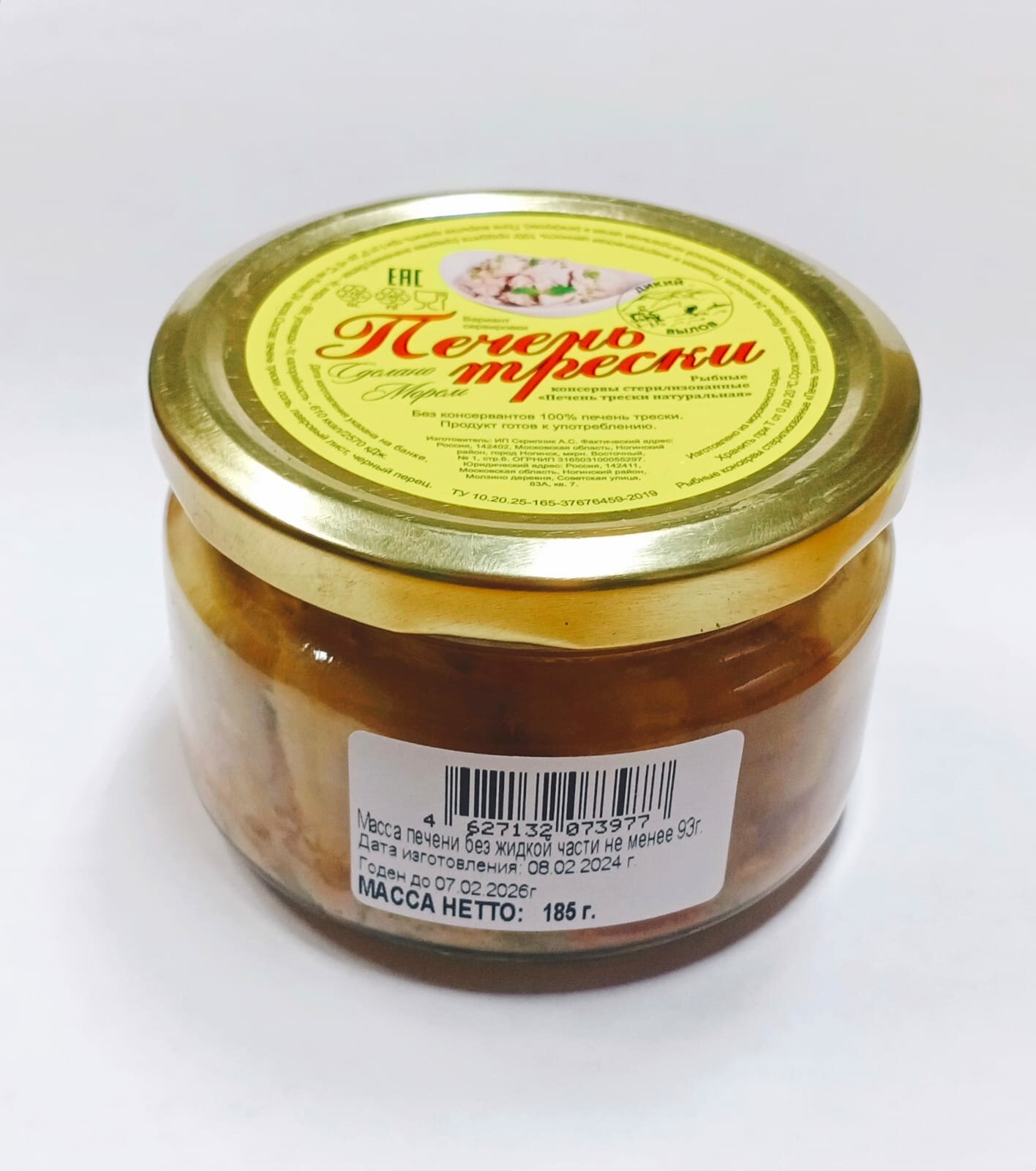 | Состав | печень трески тихоокеанской, соль, лавровый лист, черный перец |