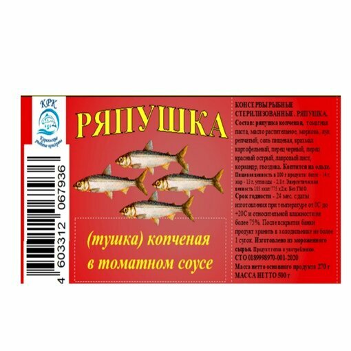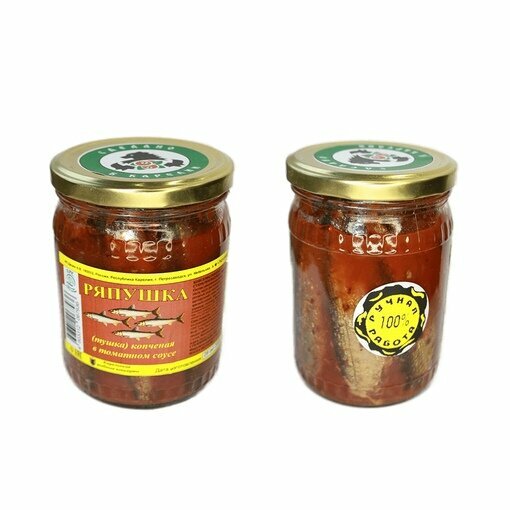 | Состав | Ряпушка копченая, томатная паста, масло растительное,морковь,лук,соль,крахмал,перец,лавровый лист,специи. |