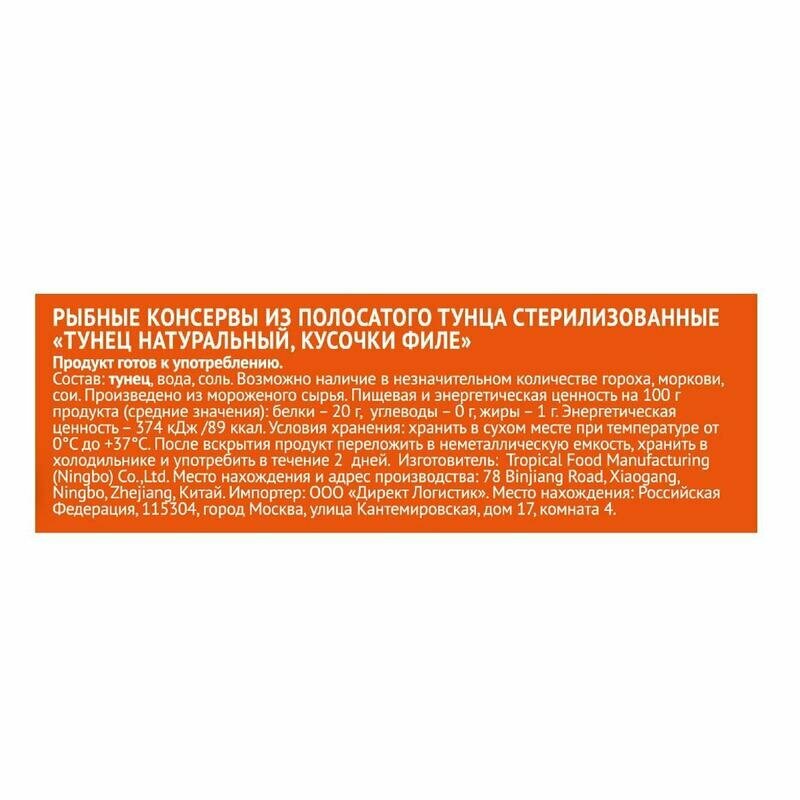 | Состав | тунец, вода, соль |
