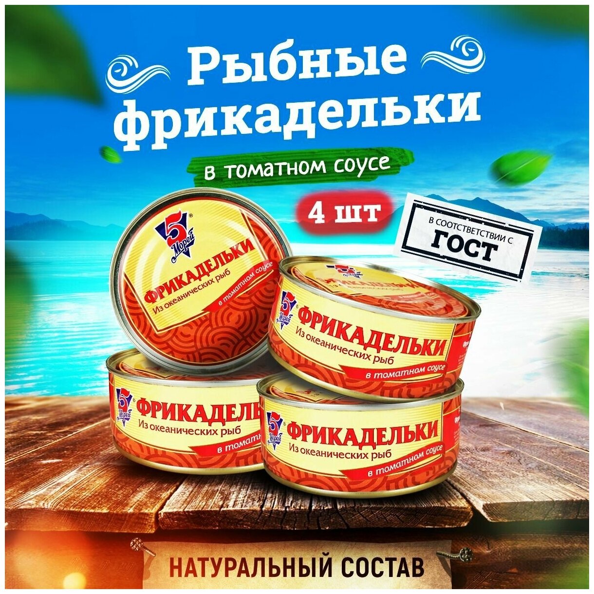 Купить Консервы рыбные 5 Морей - Фрикадельки из океанских рыб в томатном соусе, 240 г - 4 шт