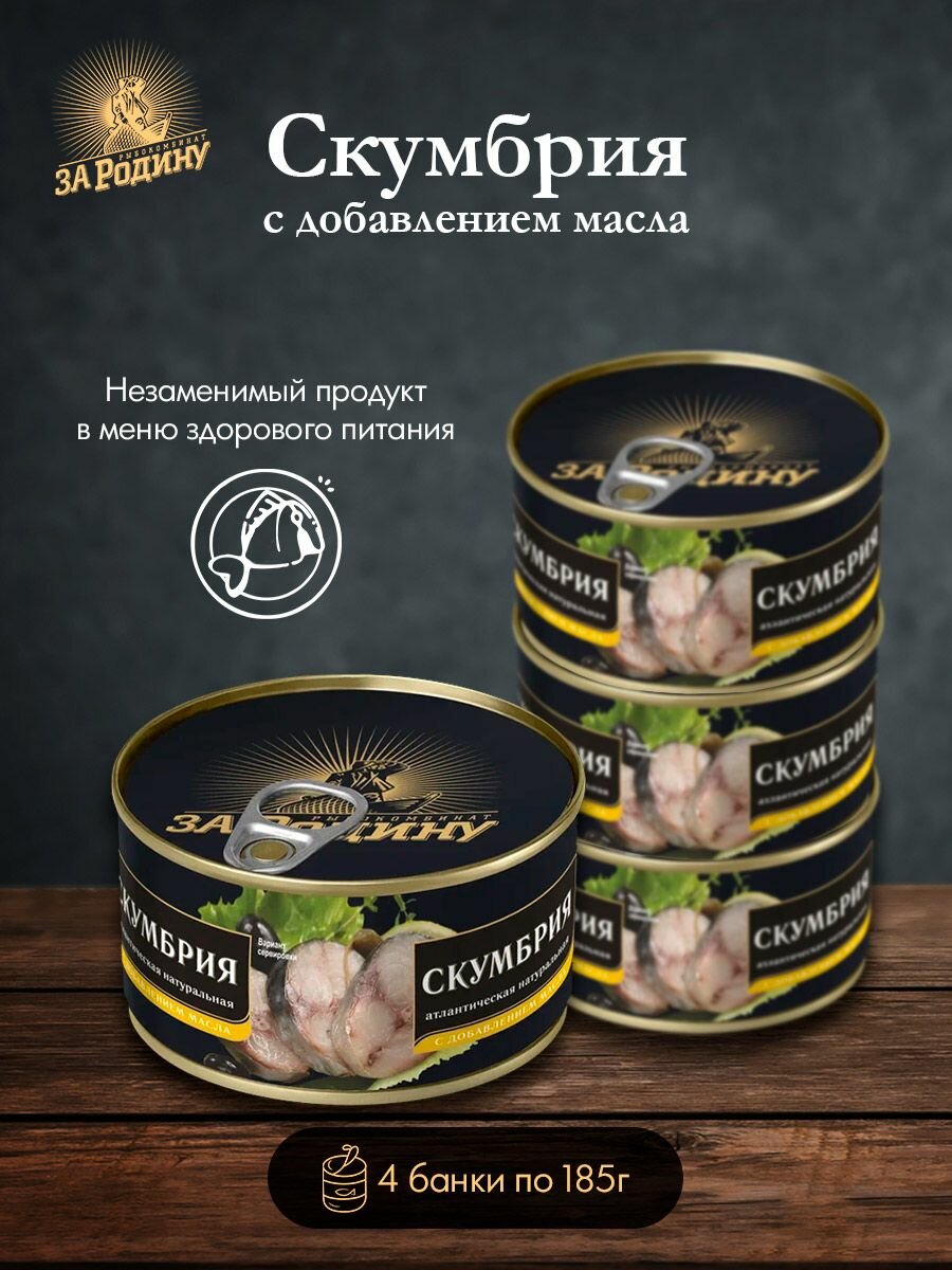 Скумбрия атлантическая За Родину натуральная с добавлением масла 185 г 4 шт интересное: