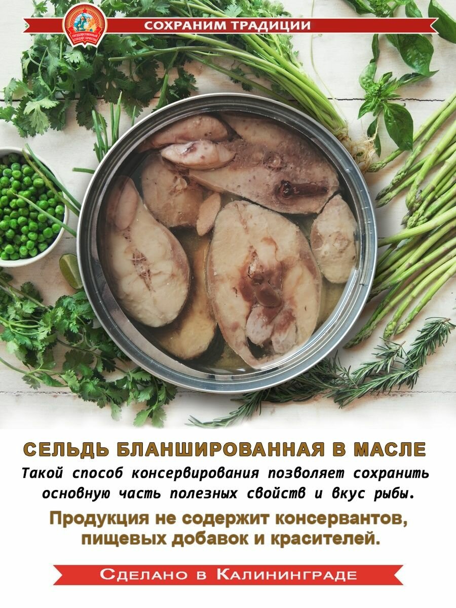Сельдь бланшированная в масле ГОСТ Сохраним Традиции 240гр. 1 шт. интересное: