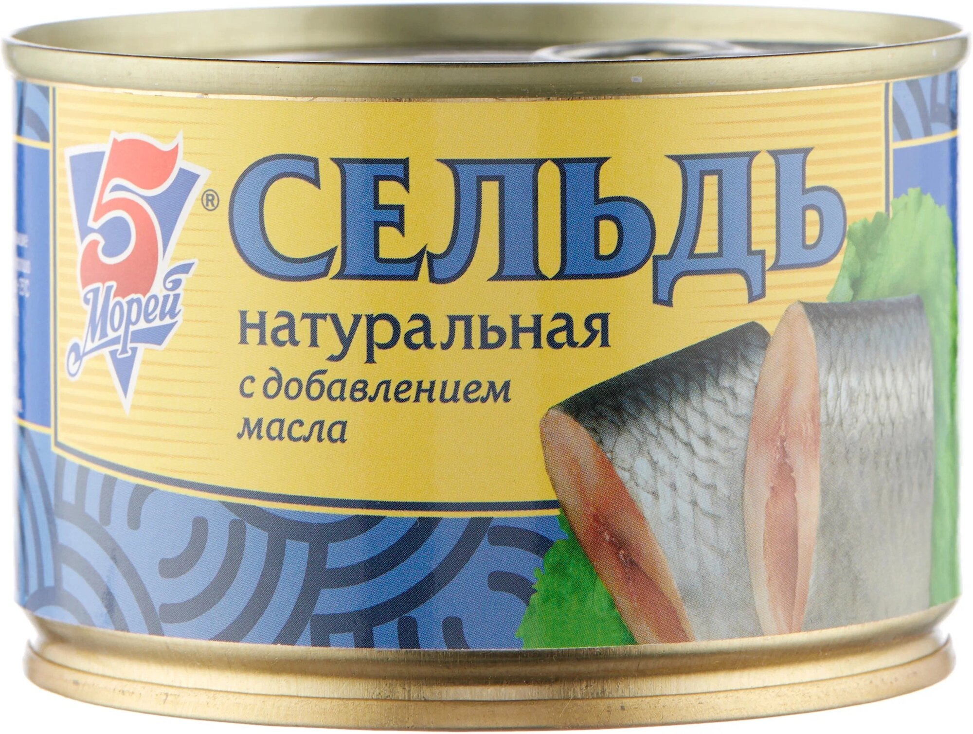 Сельдь тихоокеанская натуральная с добавлением масла 5 Морей 250гр. 1 шт.