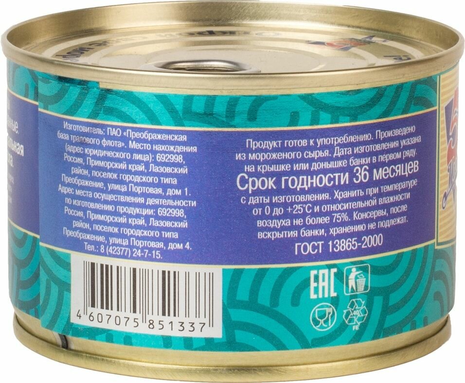 Консервы рыбные 5 Морей - Скумбрия атлантическая, 250 г интересное: