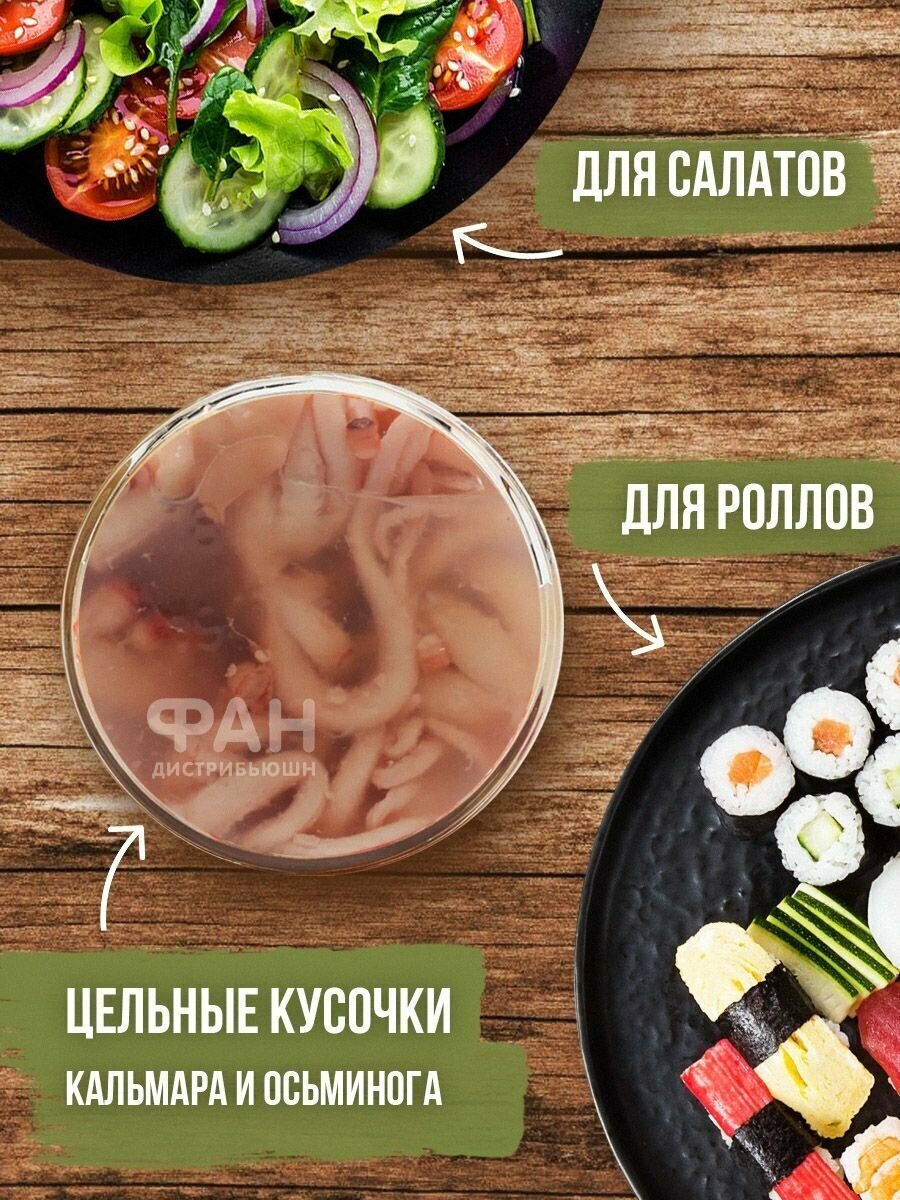 Консервы Рыбозавод Большекаменский "Щупальца кальмара и осьминог, ассорти натуральное", 200 гр интересное: