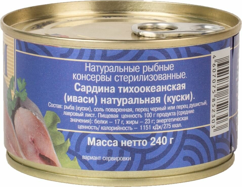 Сардина Иваси "5 Морей" тихоокеанская натуральная 240г (с ключом) Преображенская БТФ интересное: