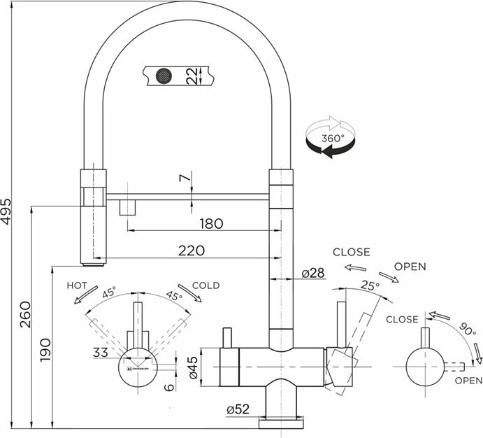Смеситель для кухни и фильтрованной воды OMOIKIRI Kanto-C 4994015 выдвижной излив, хром