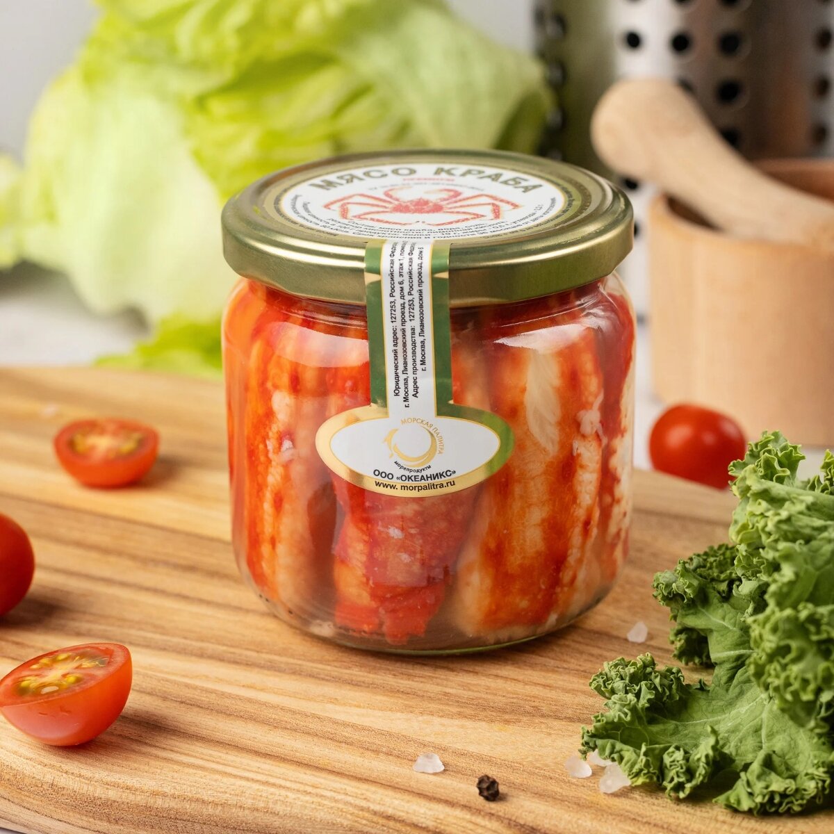 Мясо краба натуральное в собственном соку 380мл; Морепродукты интересное:
