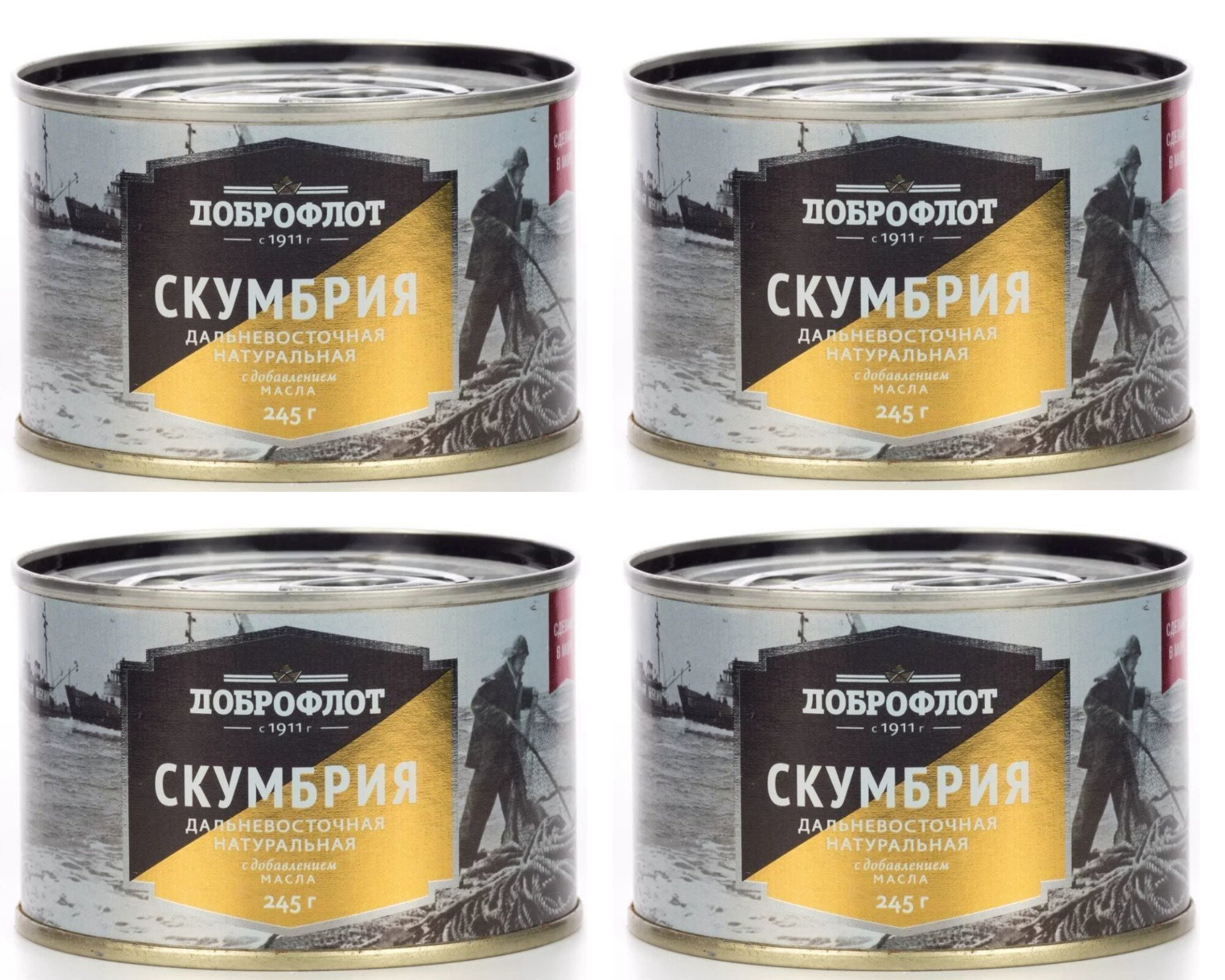 Консервы рыбные "Доброфлот" Скумбрия натуральная с добавлением масла ГОСТ, 4 шт по 245 г
