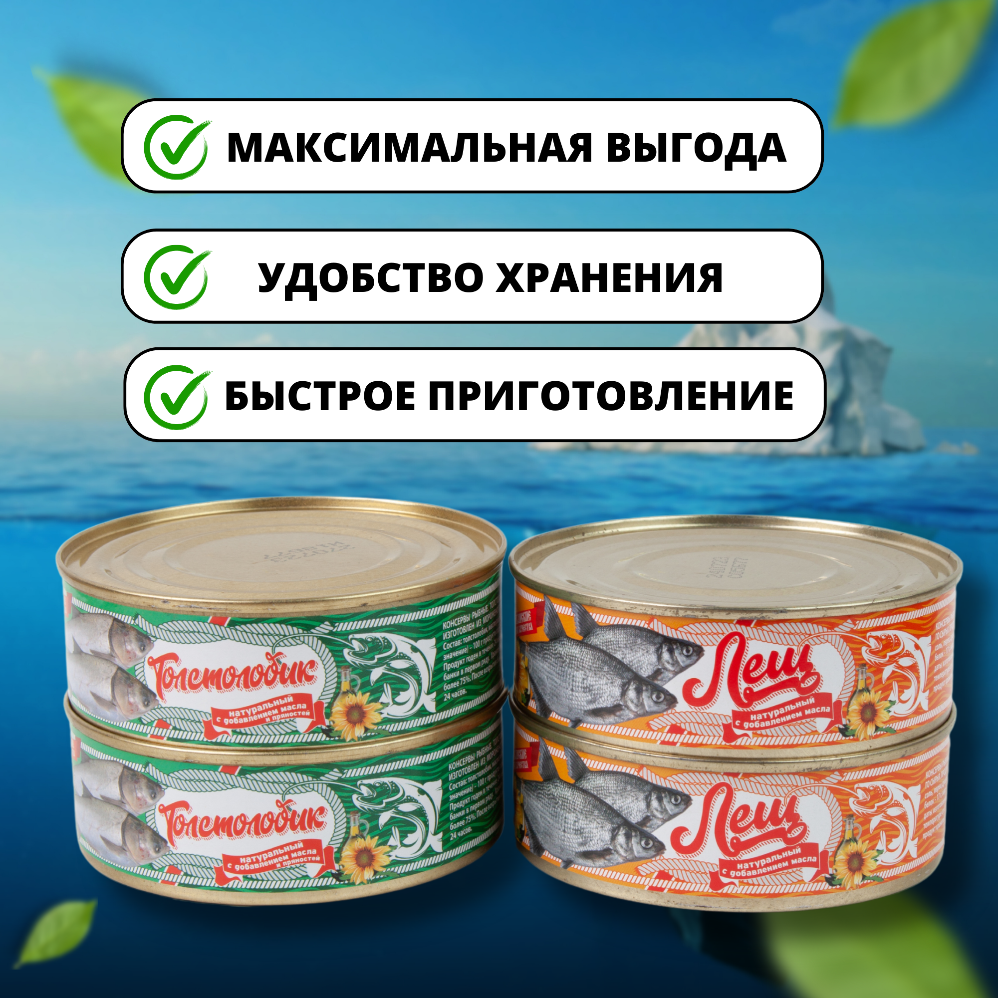 Купить Рыбные консервы, толстолобик и лещ 4 банки по 240 грамм