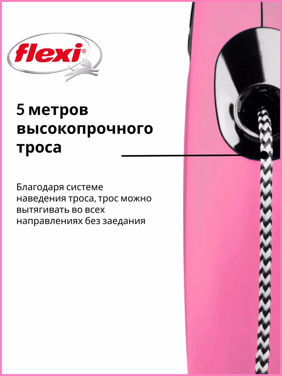 Купить Поводок-рулетка Flexi New Classic cord M, 5 м, 20 кг, розовый