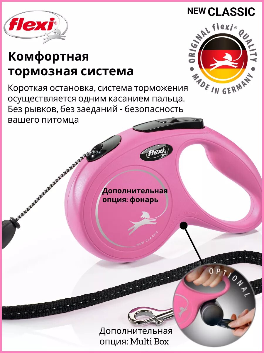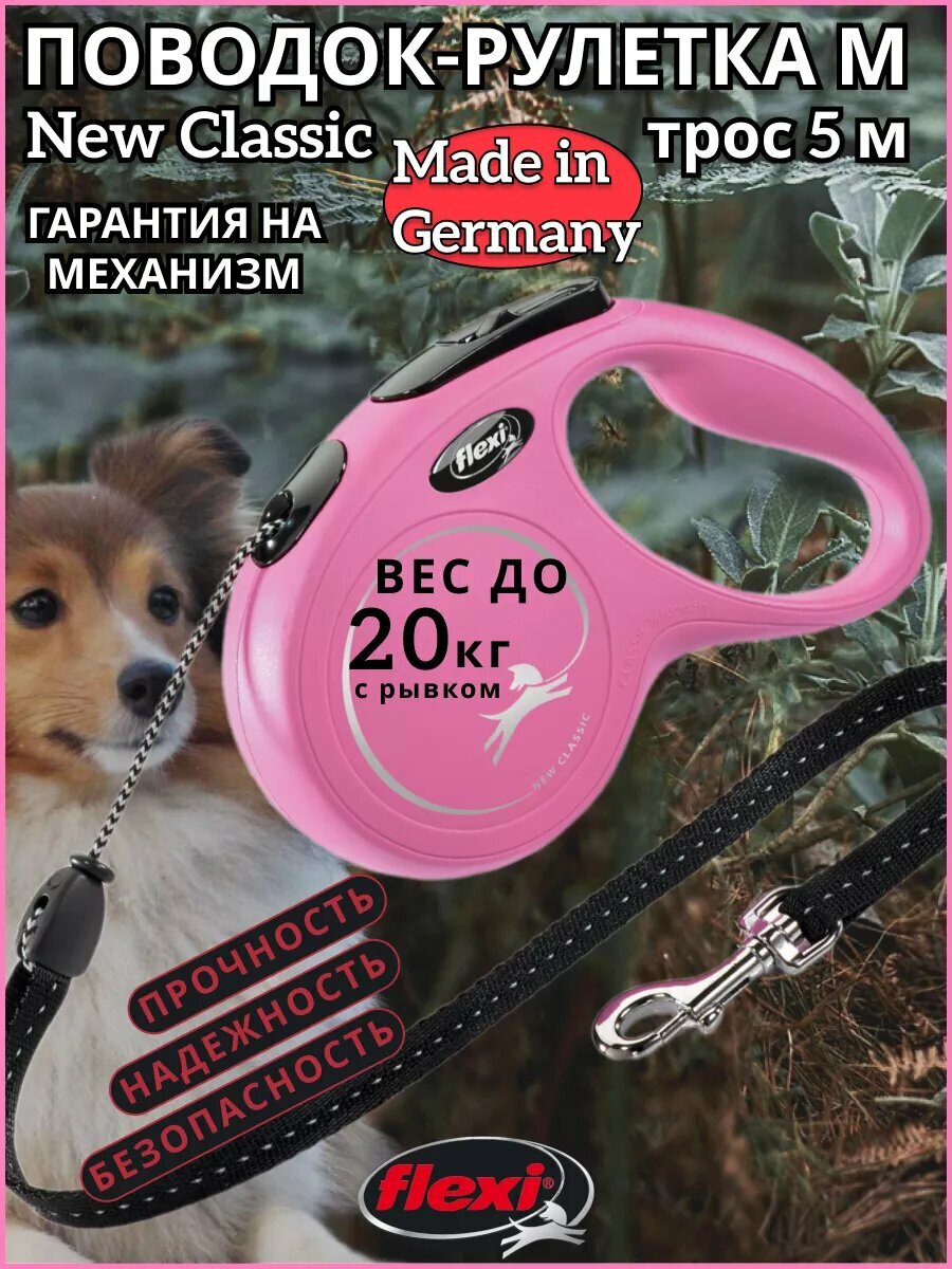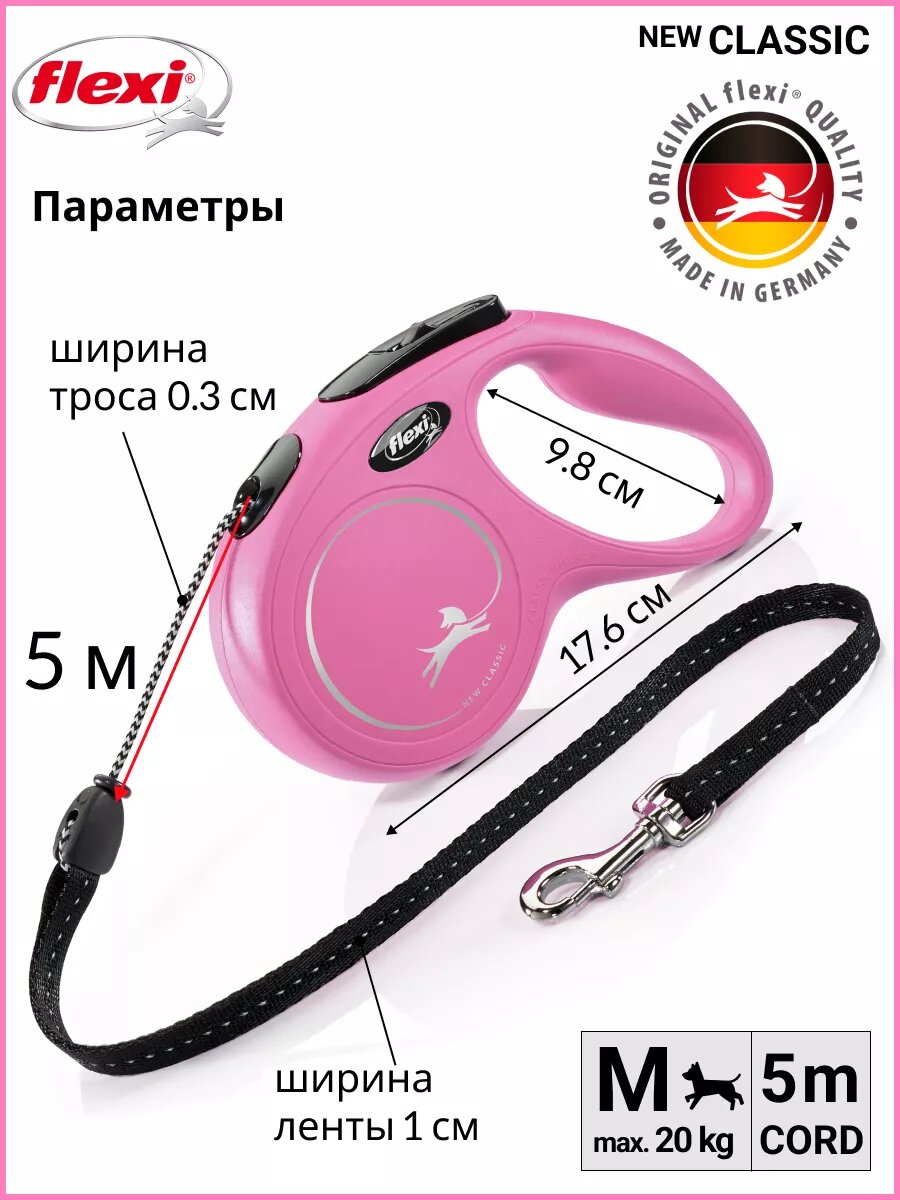 Ниже Вы можете прочитать отзывы на Поводок-рулетка Flexi New Classic cord M, 5 м, 20 кг, розовый, ознакомится с подробными характеристиками, посмотреть интересные обзоры и фотографии на Поводок-рулетка Flexi New Classic cord M, 5 м, 20 кг, розовый.