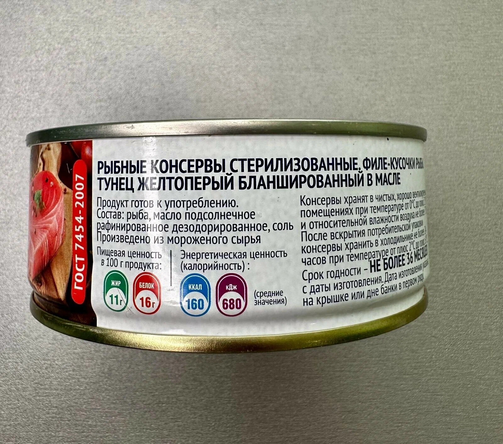 | Состав | рыба Тунец; масло подсолнечное рафинированное дезодорированное; соль |