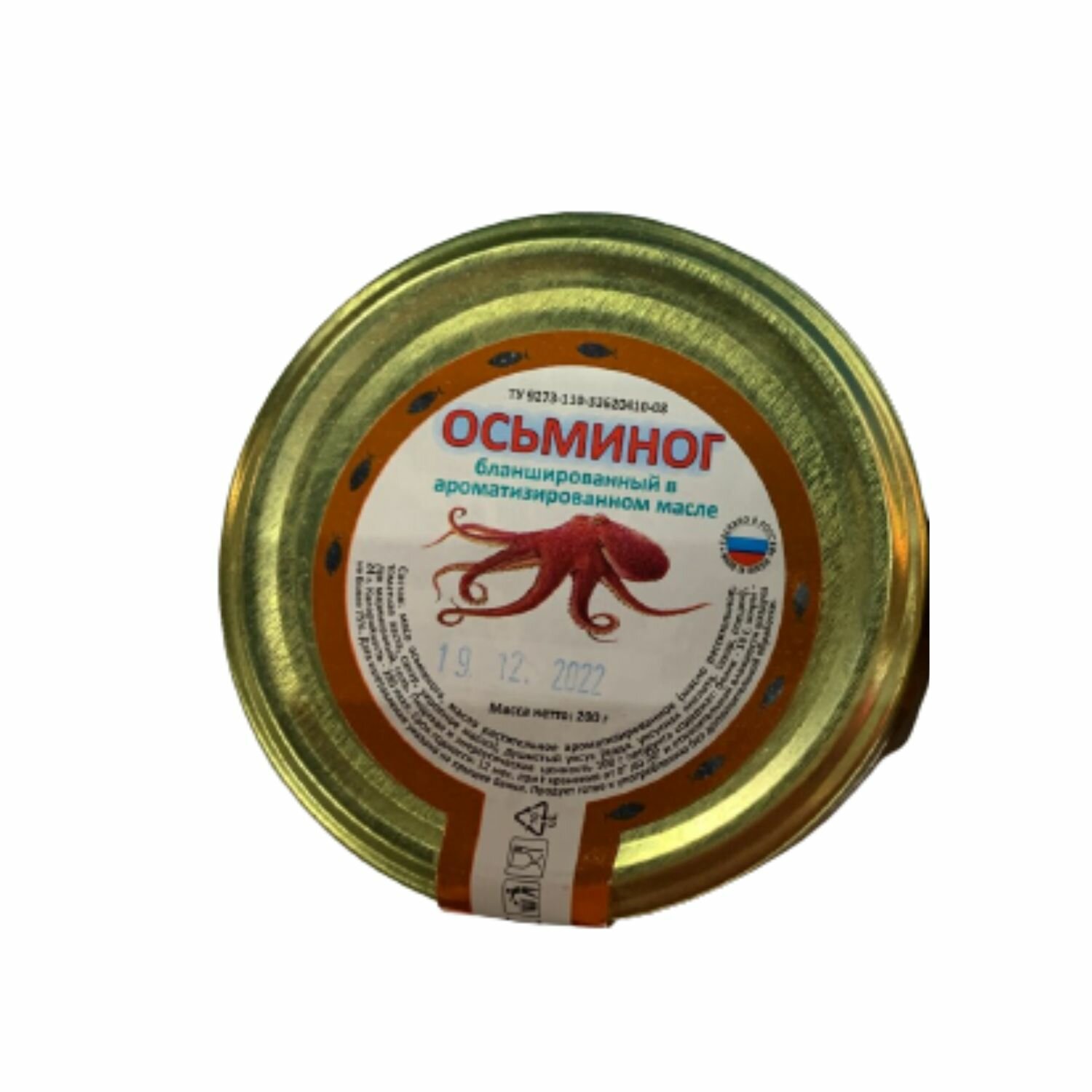 | Состав | осьминог (кусочки), ароматизированное масло (масло растительное, масло укропное, пряности), соль пищевая. Изготовлено из мороженого сырья. |