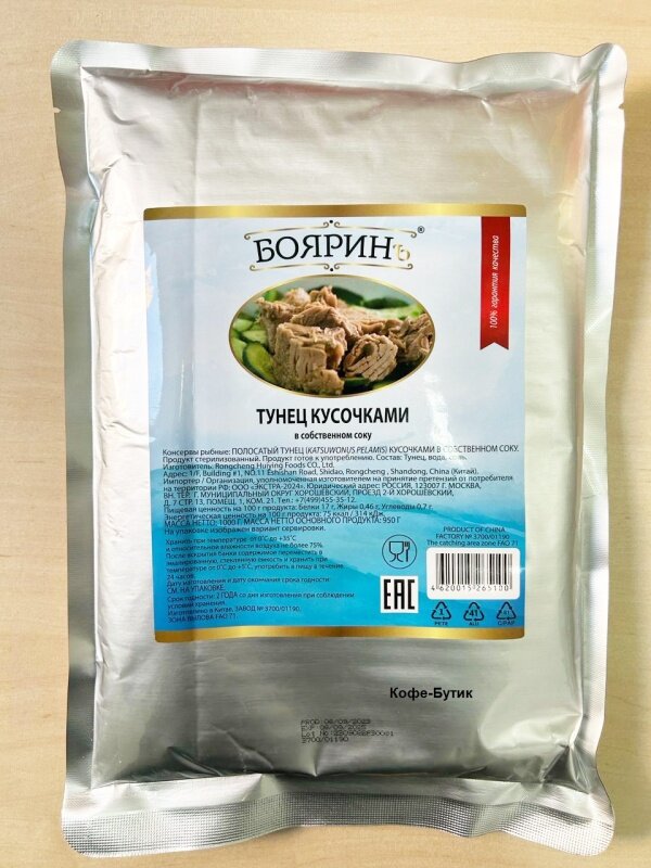 Тунец натуральный в собственном соку кусочками Боярин 1 кг интересное: