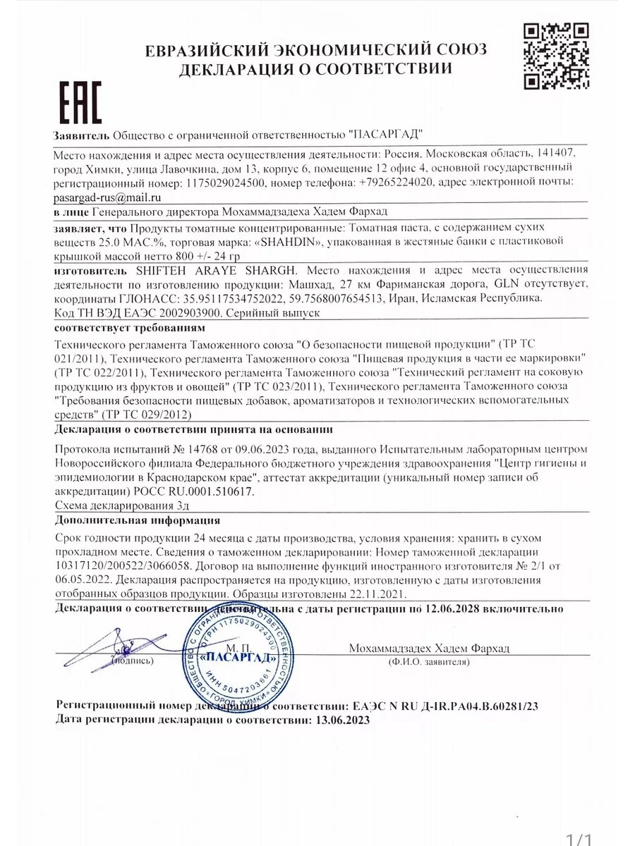 Томатная паста Иранская Шахдин Shahdin 800г. 2шт интересное: