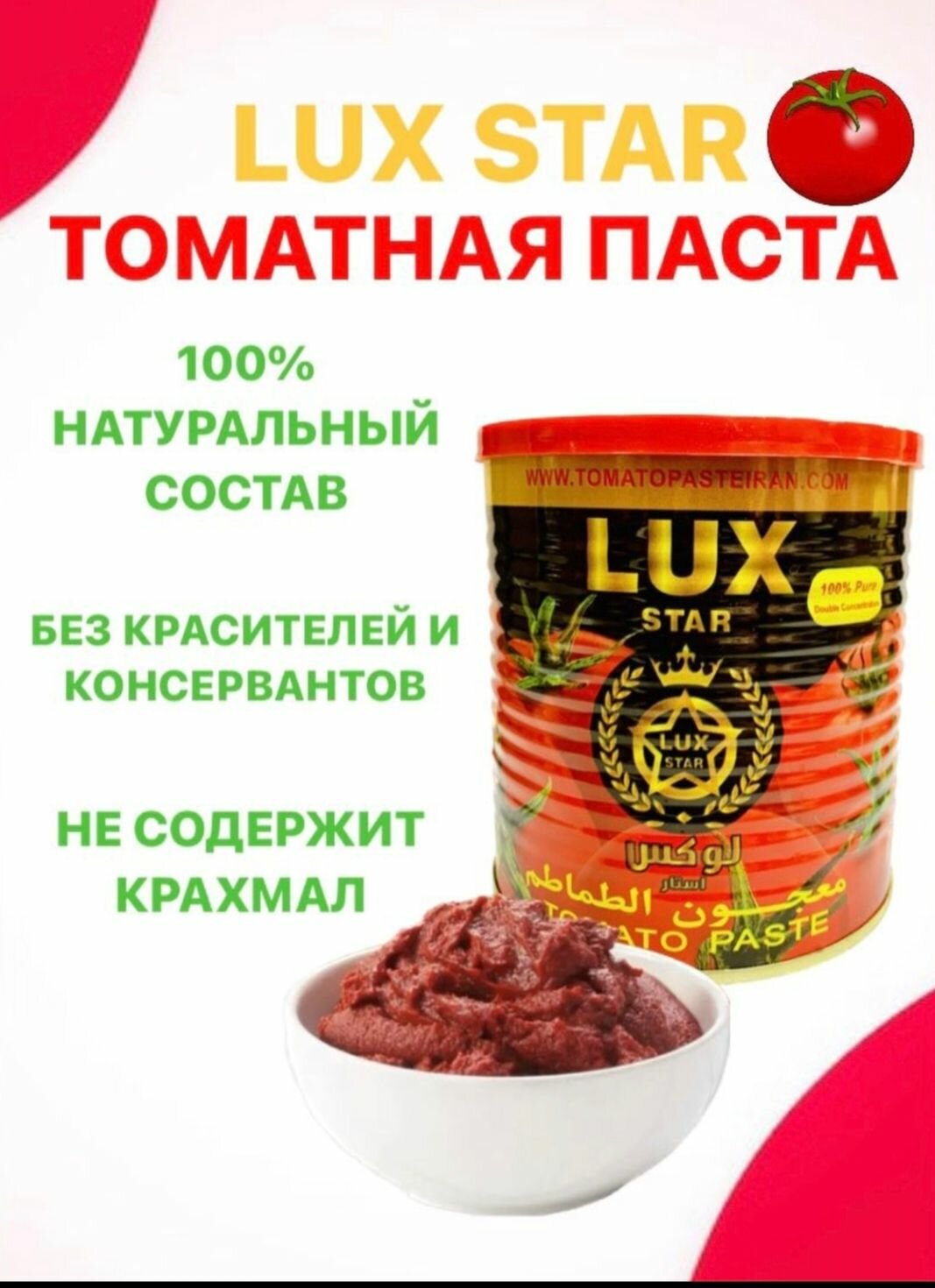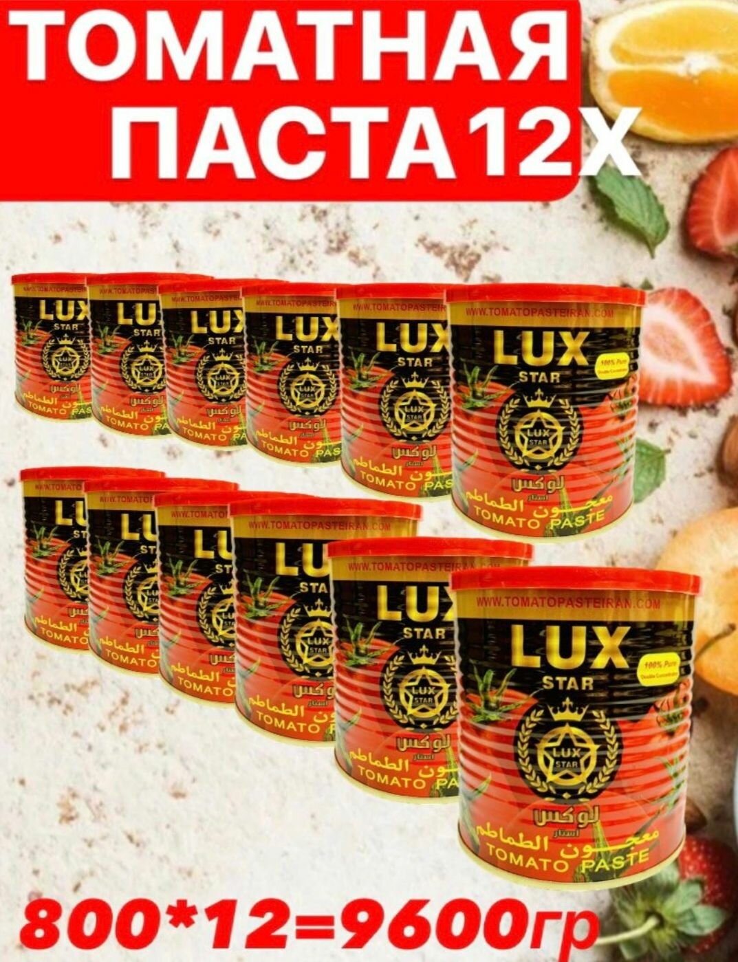 Lux Star, 12 банок*800 гр, томатная паста, Иран высший сорт. интересное:
