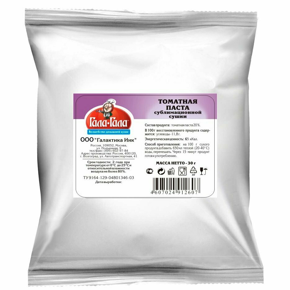 Томатная паста сублимированная "Гала-Гала" 30 г Комплект 3 штуки интересное: