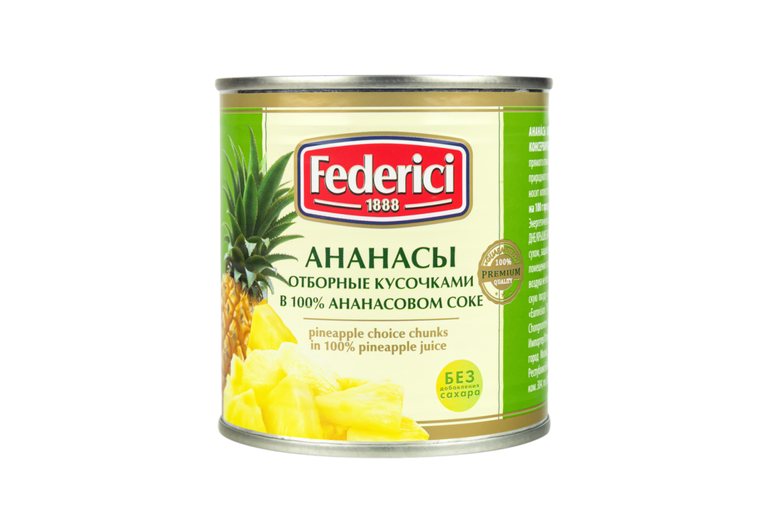 Ананасы кольцами FEDERICI отборные в ананасовом соке консервированные, 435мл интересное:
