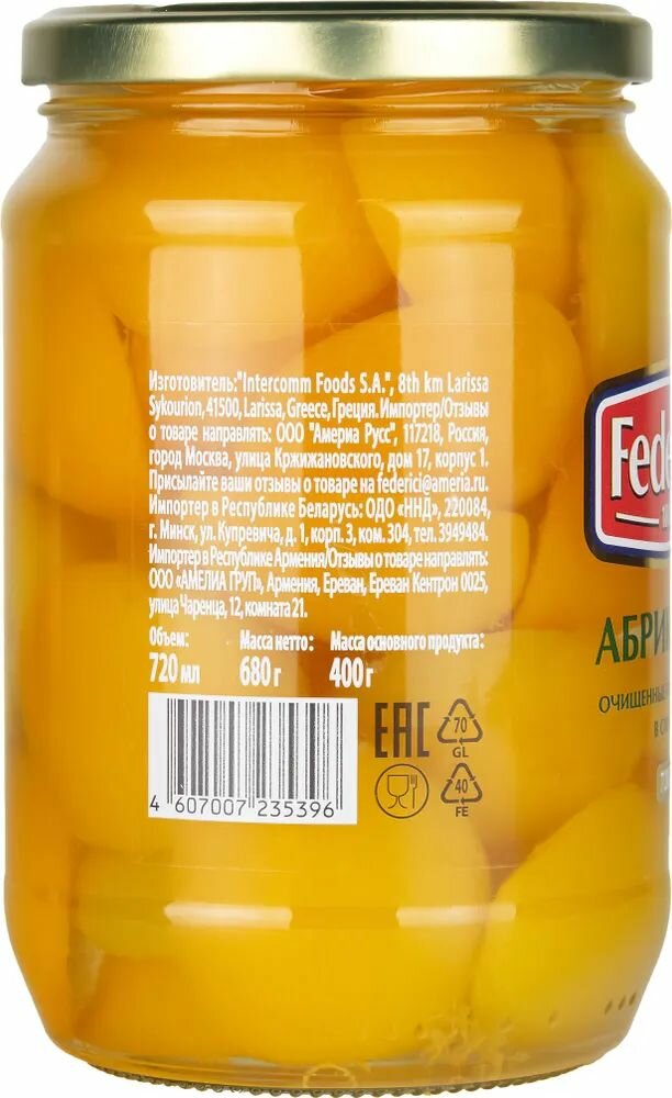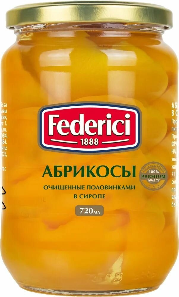 Купить Абрикосы "Federici" консервированные очищенные в сиропе, 720мл