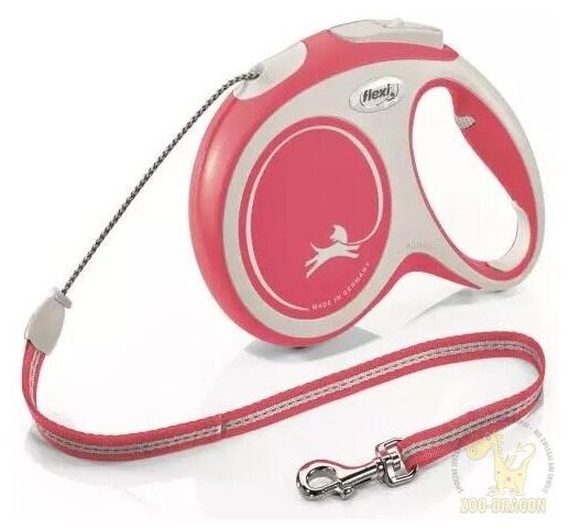 Рулетка-поводок д/собак Flexi New Comfort M Cord 8м до 20кг трос розовый 1/1