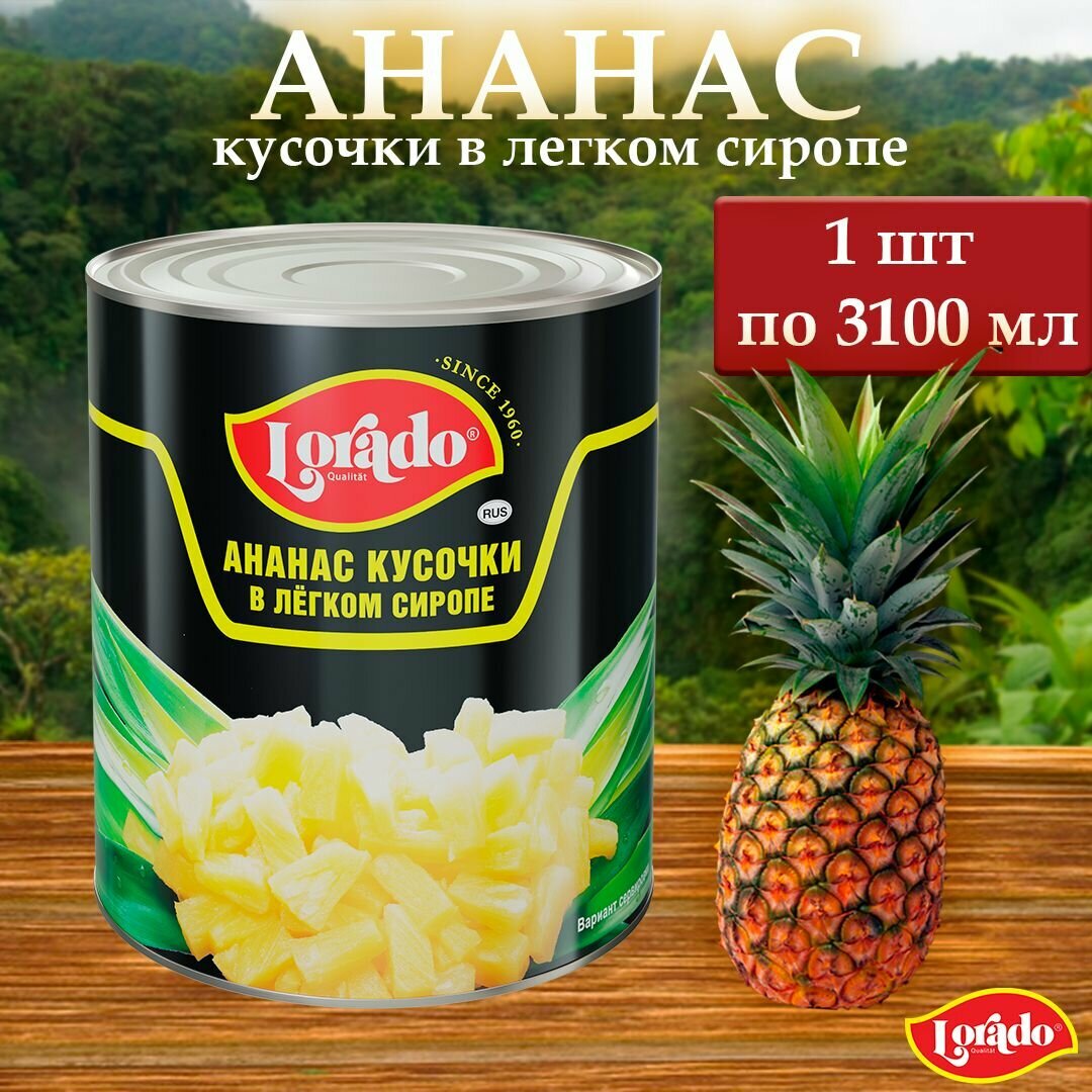 Купить Ананас кусочки, в легком сиропе, Lorado, 3100 мл
