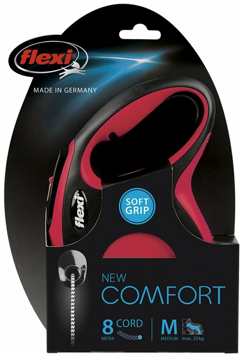 Поводок-рулетка Flexi New Comfort M Cord 8 m 20 kg red