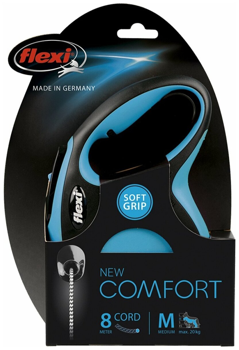 FLEXI NEW COMFORT CORD тросовый поводок рулетка для животных 8 м размер M голубой (1 шт)