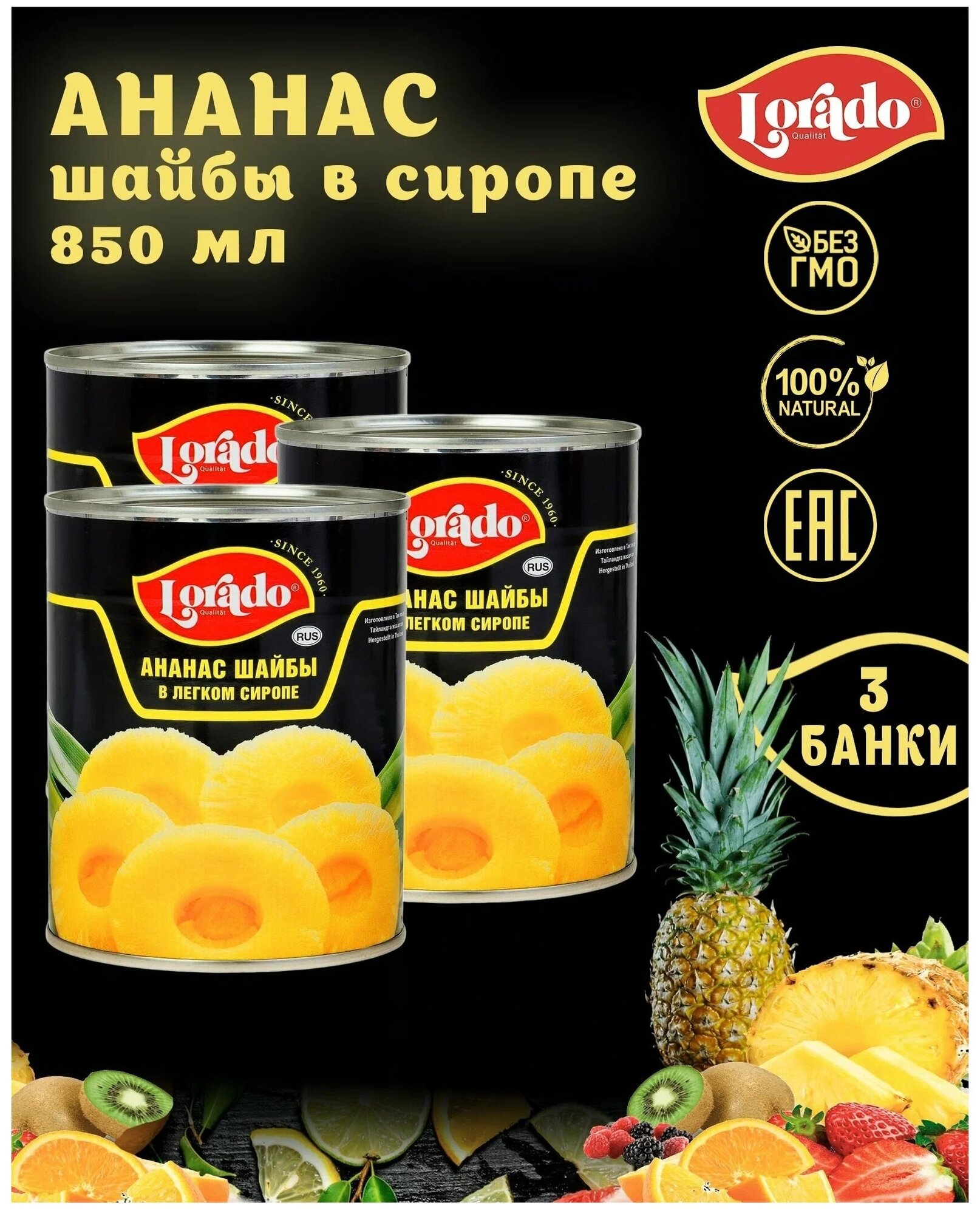Ананас шайбы в легком сиропе, Lorado, 3 шт. по 850 мл интересное: