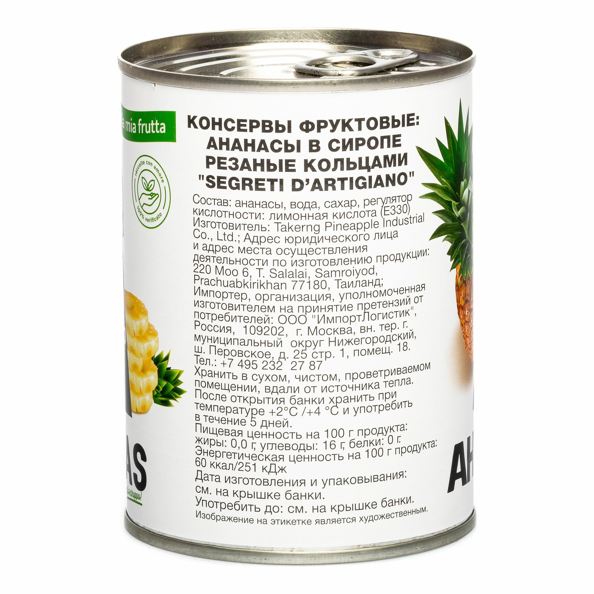 | Состав | Ананасы, вода, сахар, регулятор кислотности: лимонная кислота Е330 |