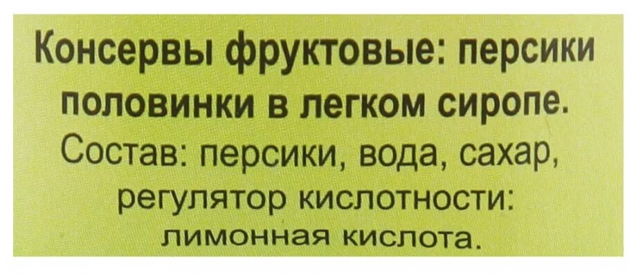 | Состав | Персики, вода, сахар, лимонная кислота. |