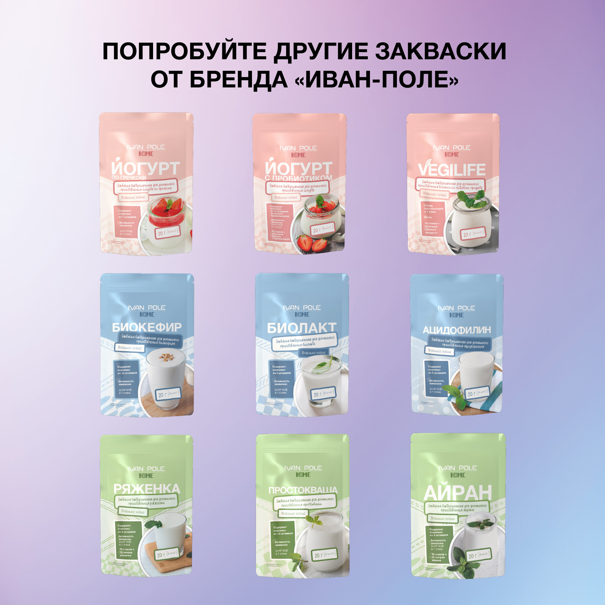 Купить Закваски набор Йогурт+Пробиотик, 20 порций по 3 г, сухая бактериальная, Иван-поле
