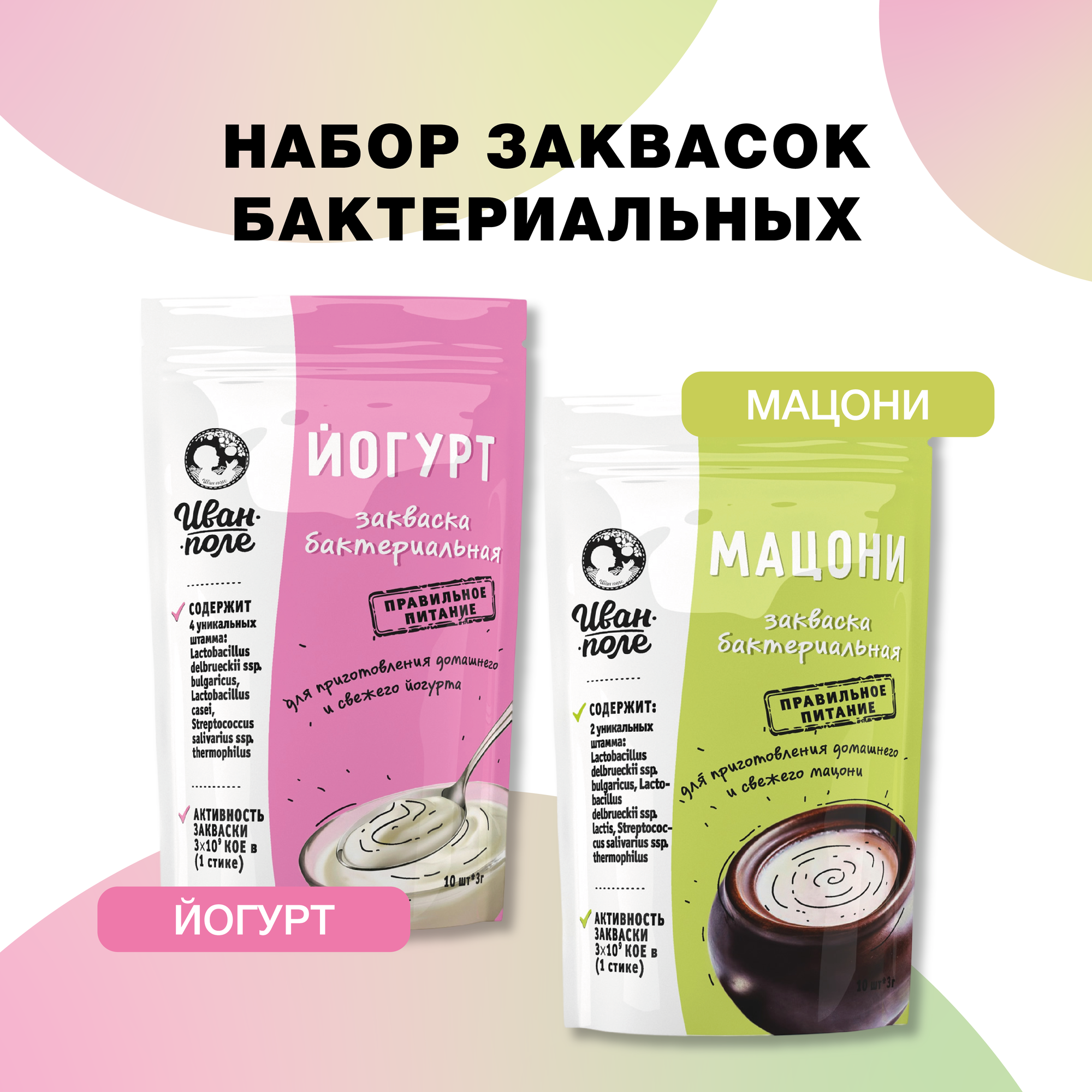 Закваски набор Йогурт + Мацони, 20 порций по 3 г, сухая бактериальная, Иван-поле интересное: