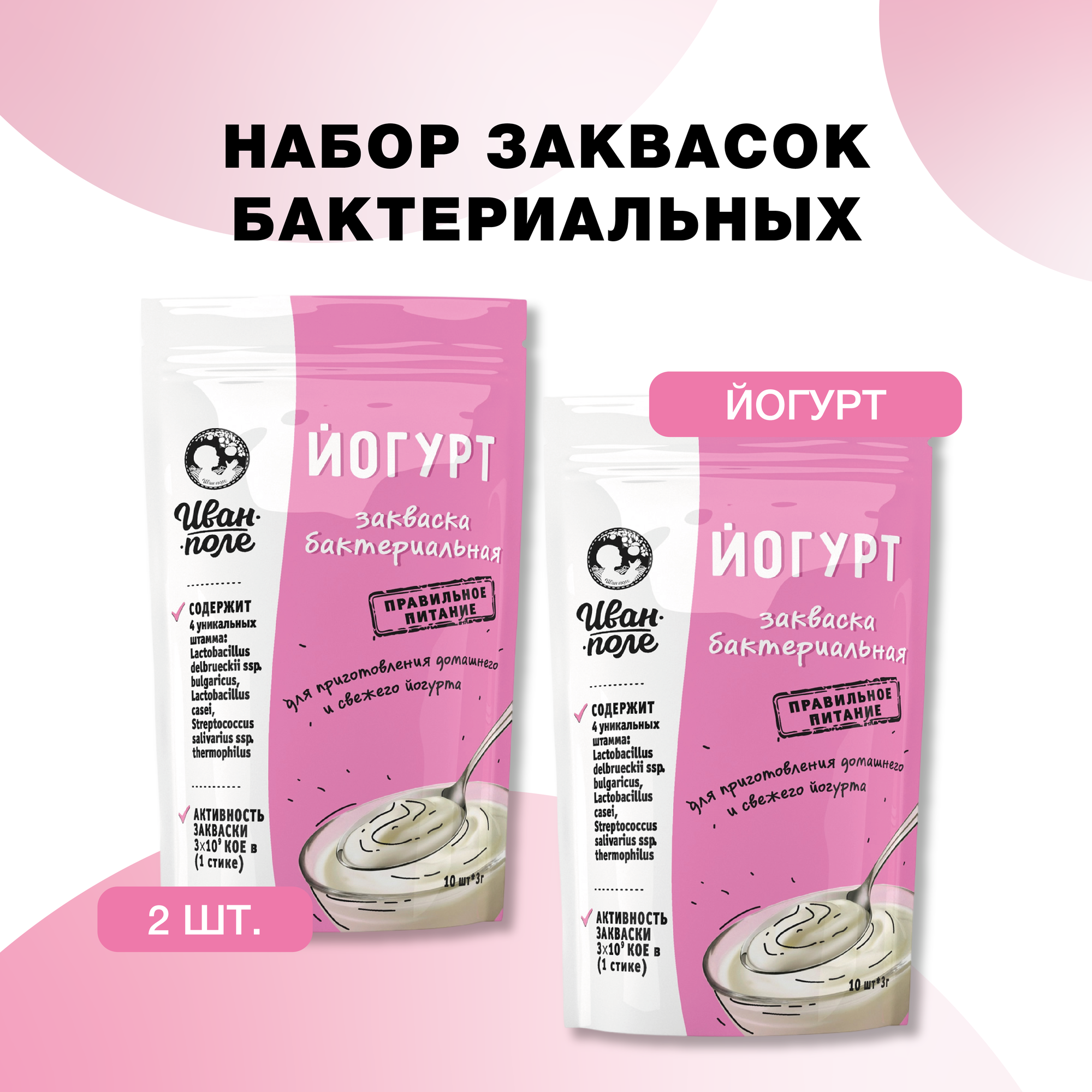 Купить Закваска набор 2 шт Йогурта, 20 порций по 3 г, сухая бактериальная, Иван-поле