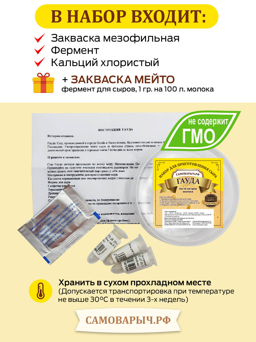 Ниже Вы можете прочитать отзывы на Закваска для сыра Гауда, ознакомится с подробными характеристиками, посмотреть интересные обзоры и фотографии на Закваска для сыра Гауда.