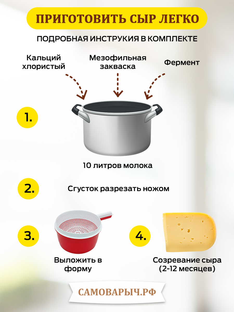 Набор заквасок для приготовления домашнего мягкого сыра, на 10 л молока