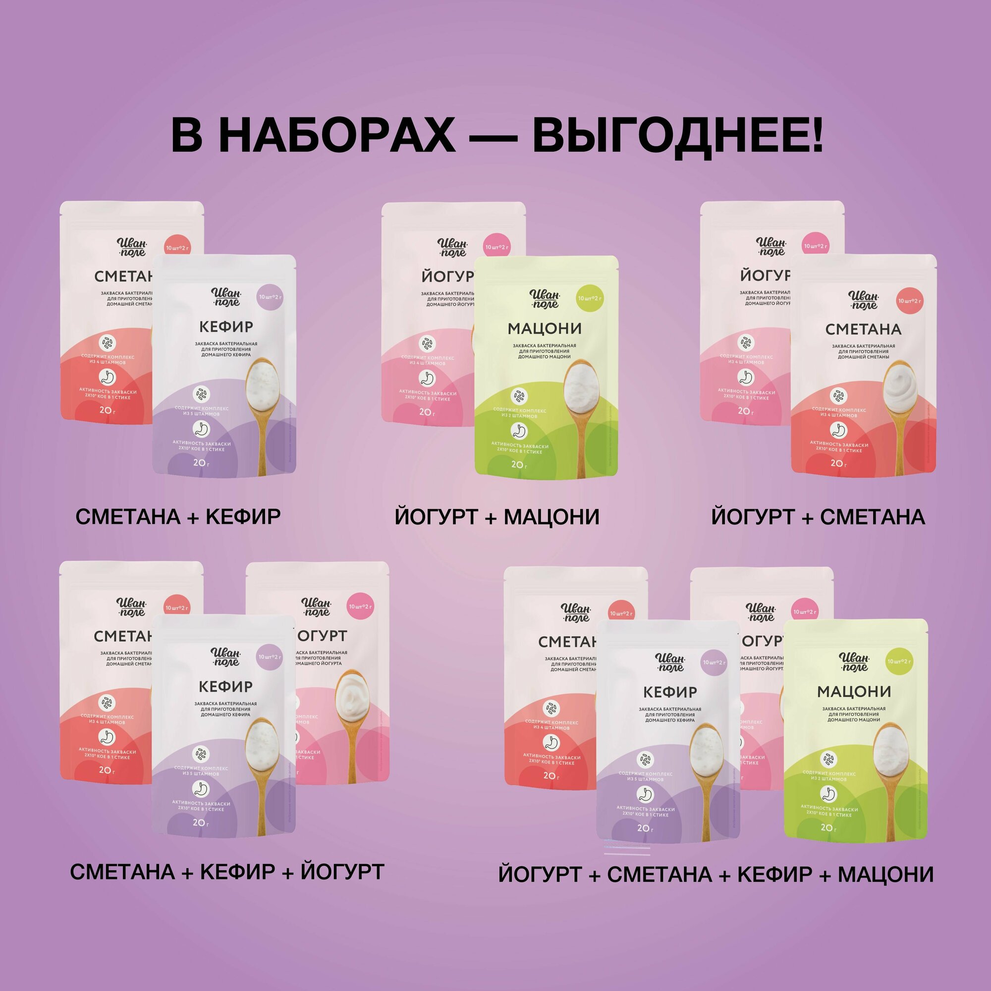 Закваска набор 2 шт Йогурт с пробиотиком, 20 порций по 2 г, сухая бактериальная, Иван-поле