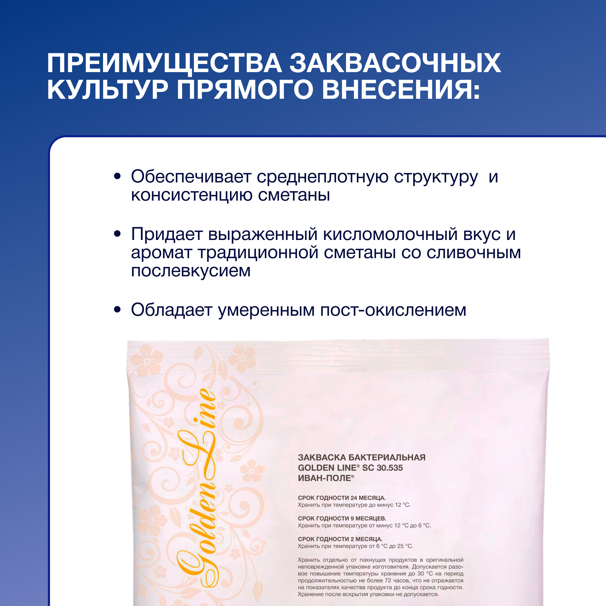 Закваска для Сметаны Golden Line, 20 г на 50 - 100 л молока, сухая бактериальная, Иван-поле интересное: