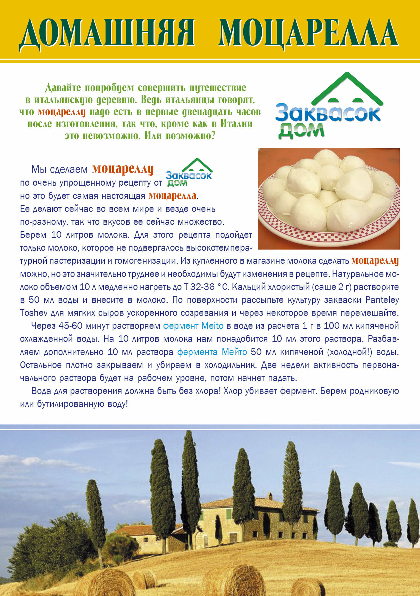 Набор заквасок для приготовления домашнего мягкого сыра, на 10 л молока