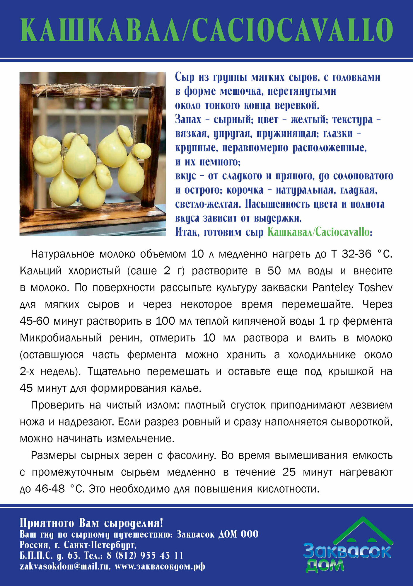 | Дополнительная информация | готовый продукт в виде мягкого сыра хранить в холодильнике при Т до + 6 С |