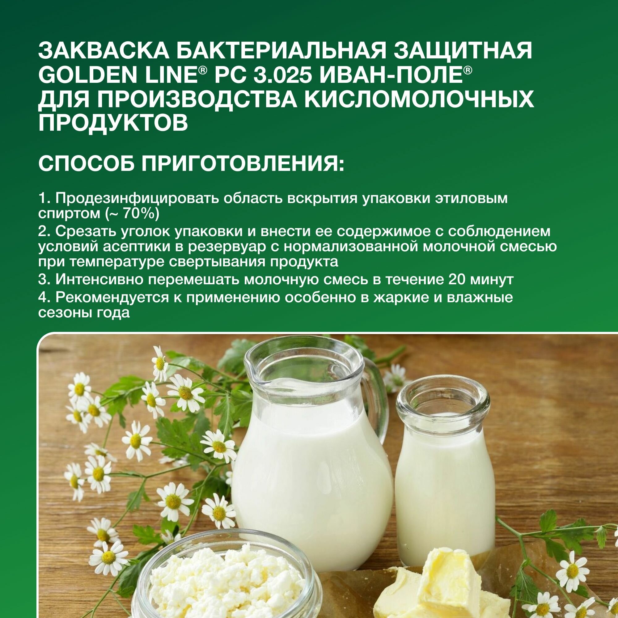 Закваска защитная для Кисломолочных продуктов Golden Line, 20 г на 250 - 500 л молока, сухая бактериальная, Иван-поле интересное: