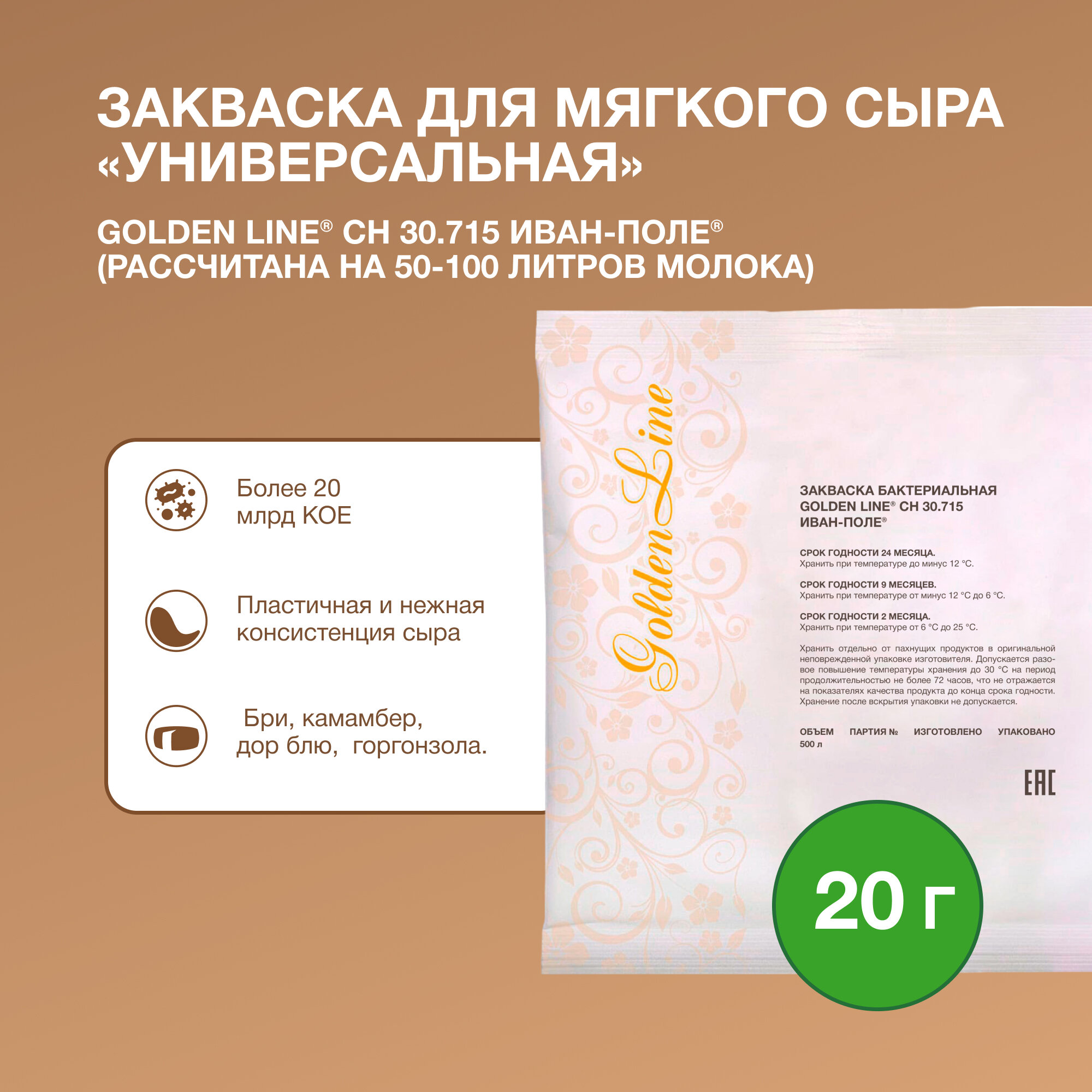 Купить Закваска для Мягкого сыра Golden Line, 20 г на 50 - 100 л молока, сухая бактериальная, Иван-поле